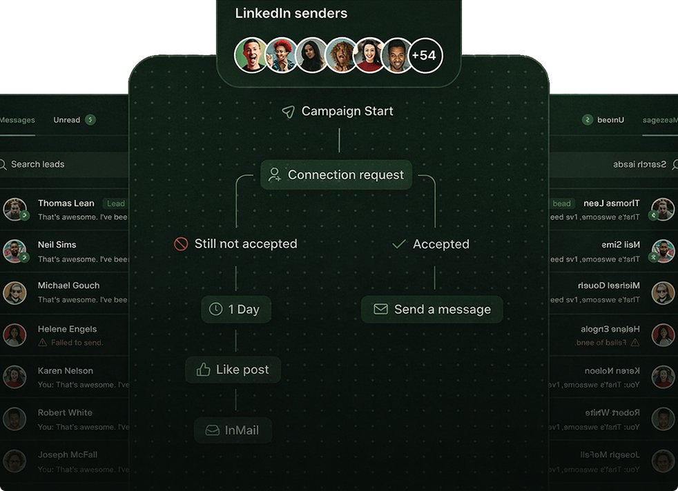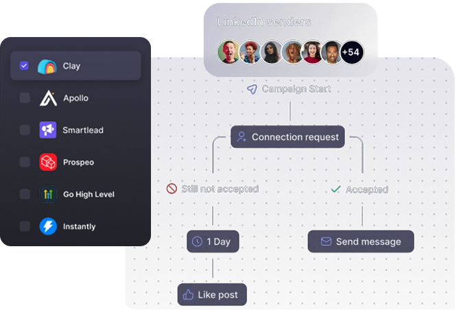 Connect unlimited LinkedIn accounts for one flat fee and automatically rotate sending between them. Reach more leads and book more meetings, without losing that much-needed personal touch.