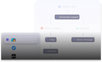 Automate actions such as connection requests, messages, and profile views. Use “If Connected” logic to segment current connections from new ones, making your outreach precise.